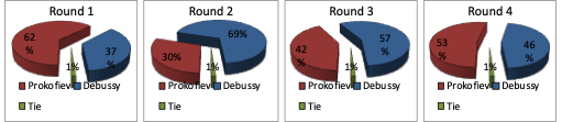 A beautiful audience came to the Hawaii Convention Center in Honolulu to kick off the AIPF. I was thrilled to have the opportunity to play, see old friends, make new ones, and discover this wonderful city. Prokofiev wins again! But interestingly, there were a significant number of people who voted a straight ballot for Debussy, many more than those who voted straight Prokofiev. Only the 60+ age group favored Debussy overall. However, a huge majority went for the L’isle Joyeuse. Could it be the influence of Hawaii’s island paradise setting??