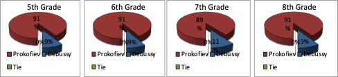 A special program just for the Elementary and Middle Schools of Dodge City brought together over 750 students into the gymnasium! There were only 3 rounds, but the essential contest was the same. Maybe it was the morning hour, maybe it was the age (although look at the results from last night in contrast!), maybe it was the sheer energy of the number of kids, but Prokofiev was the overwhelming winner, in all grades as well as overall. However, Round 2 did go to Debussy by a strong margin! I’d like to give a sincere thank you to the kids for being such amazing listeners and participants. Bravo to all of you and your teachers!